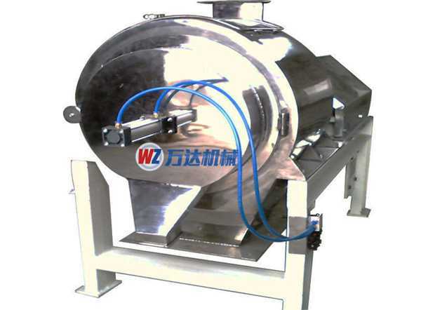 本機篩網為圓筒壯分布在機體內,物料由螺旋葉片送入篩網體,網內有高速旋轉葉片,通過葉片產生的足夠大的離心壓力及向前推進的旋風來迫使物料通過篩網。調節定時器,控制汽缸的開啟時間,可得到物料在篩網體內的不同的時效。調節葉片與篩網之間的距離,可改變物料在篩網體內的通過率。